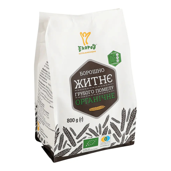 Житнє борошно грубого помелу Екород — це високоякісний продукт, виготовлений із органічного жита. Відмінною рисою цього борошна є грубе помелення, що дозволяє зберегти більшу частину корисних речовин, які містяться в оболонці зерна. Це борошно підходить для приготування різноманітної випічки, зокрема хліба, пирогів та інших домашніх страв, що вимагають використання натуральних інгредієнтів.