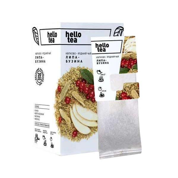 Чай квітково- ягідний Hello-tea Липа-Бузина, 20 пакетиків