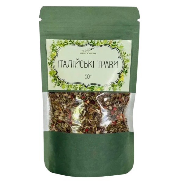 До складу італійських трав входять: паприка, часник, орегано, базилік, розмарин, петрушка, цибуля, сіль, кмин. Поєднання цих трав дозволить зануритися в атмосферу справжньої італійської кухні.