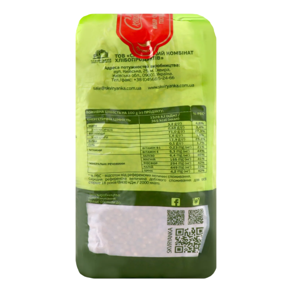 Крупа гречана органічна, без глютену 800г, "Сквирянка"