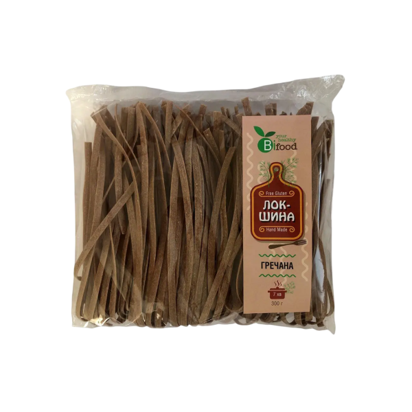 Гречана локшина Bifood — ситна та корисна альтернатива звичайним макаронним виробам. Містить велику кількість клітковини та рослинного білка, легко засвоюється та заряджає енергією на весь день. Без глютену, без яєць — ідеальний вибір для правильного харчування в будь-який час дня.