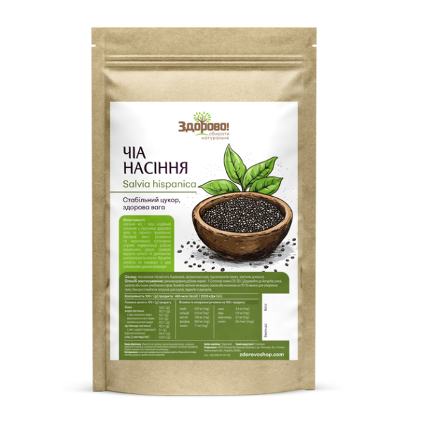 Насіння чіа Здорово – один з найпопулярніших суперфудів, відмінне джерело легкозасвоюваних протеїнів із повноцінним амінокислотним складом, що робить цей продукт альтернативою тваринним білкам. Вміст аргініну у чіа вищий за яловичину, а саме ця амінокислота відповідає за злагоджену роботу імунної системи, сприяє зміцненню м’язів та здоров’ю шкіри, підтримує тонус судин, бере участь у спалюванні підшкірного жиру, а також покращує еректильну функцію у чоловіків.
