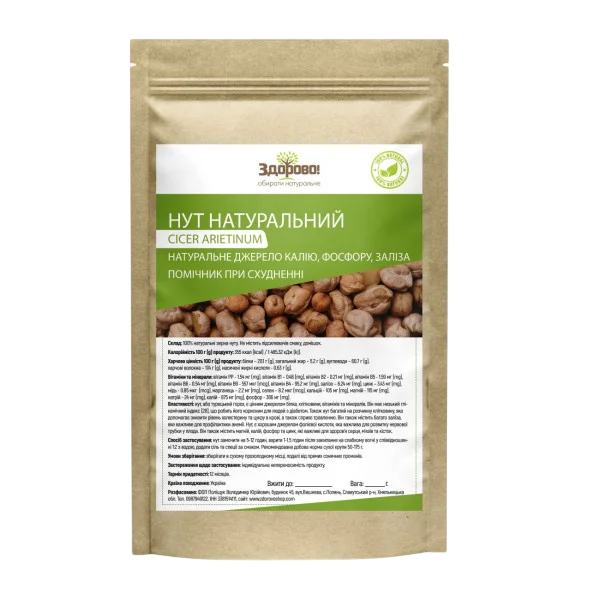 Склад: 100% натуральні зерна нуту. Не містить підсилювачів смаку, домішок.