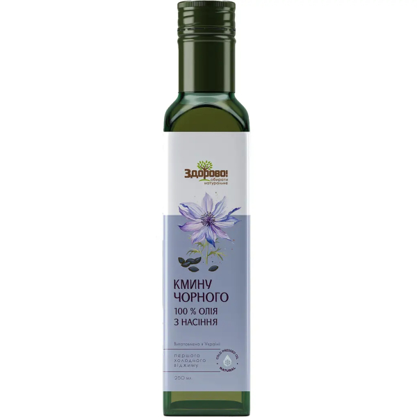 Склад: 100% олія насіння чорного кмину першого холодного віджиму.