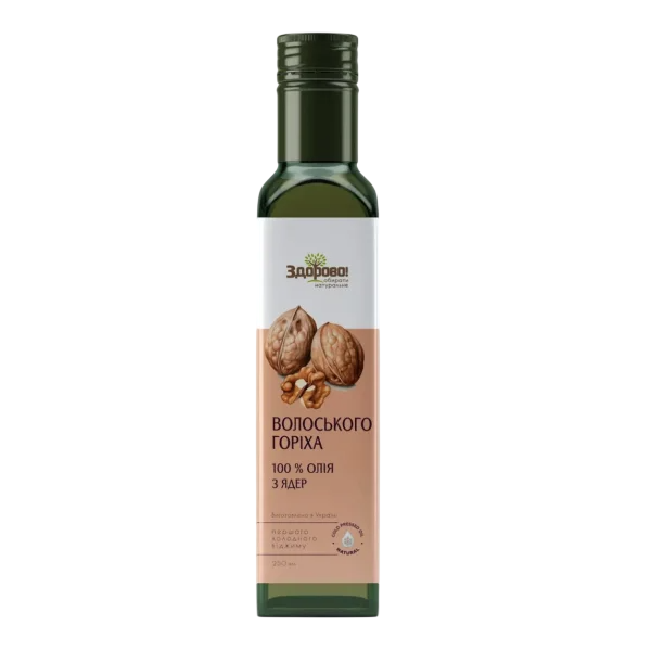 Склад: 100% олія з волоських горіхів холодного пресування.