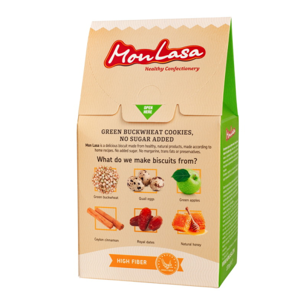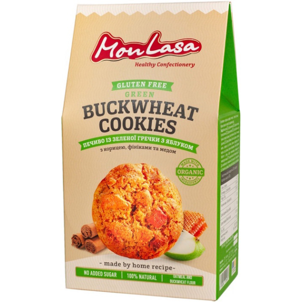 Запашне печиво з цейлонською корицею, цільнозерновим борошном органічної зеленої гречки жорнового помелу, з додаванням шматочків яблук, фініками та натуральним медом, гірчичною олією холодного пресування. Джерело вітамінів та мікроелементів у натуральному вигляді. На перепелиних яйцях.