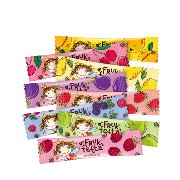 До складу набору входять 8 видів цукерок міні формату: слива, полуниця, малина, груша, вишня, абрикос, яблуко, журавлина/чорниця.