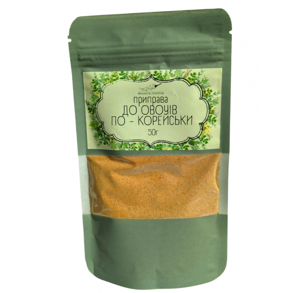 Суміш прянощів для овочів по-корейськи від "Ярмарок приправ" незамінна для маринування овочів, при приготуванні традиційних корейських салатів. Також пряний смак і аромат цієї суміші роблять оптимальним її застосування і для виготовлення рибних пресервів.