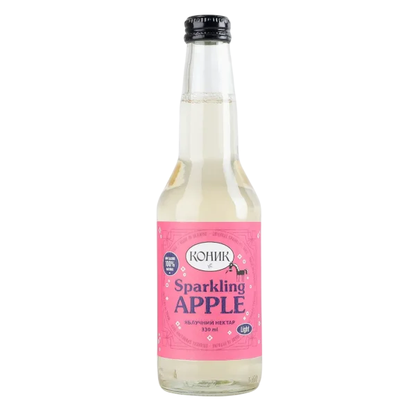 Вичавили все найсмачніше, додали водички – і ось вам sparkling, уля-ля! Без цукру, ароматизаторів. Усе, як любить ваш фруктовий «Коник». Соковито, свіжо, зелено – як хрускіт першого врожаю, тільки з бульбашками.